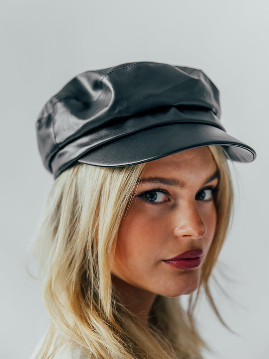 PU Leather Baker Boy In Black