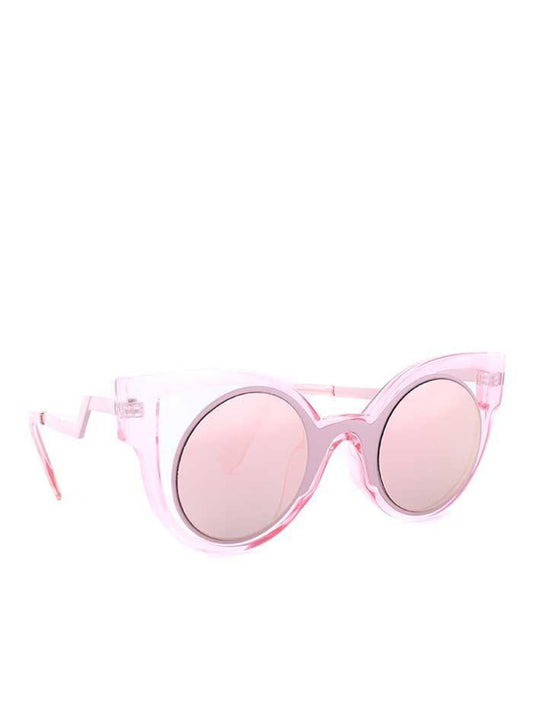 Transparent Pink Sunglasses with Round Lenses and Cat Eye Frame