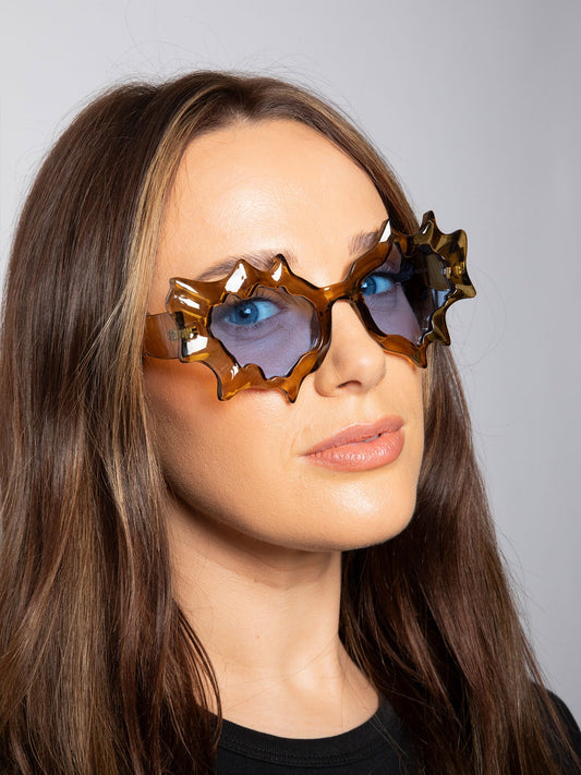 Wrap Around Racer Sunglasses with Star Hinge Detail in Black