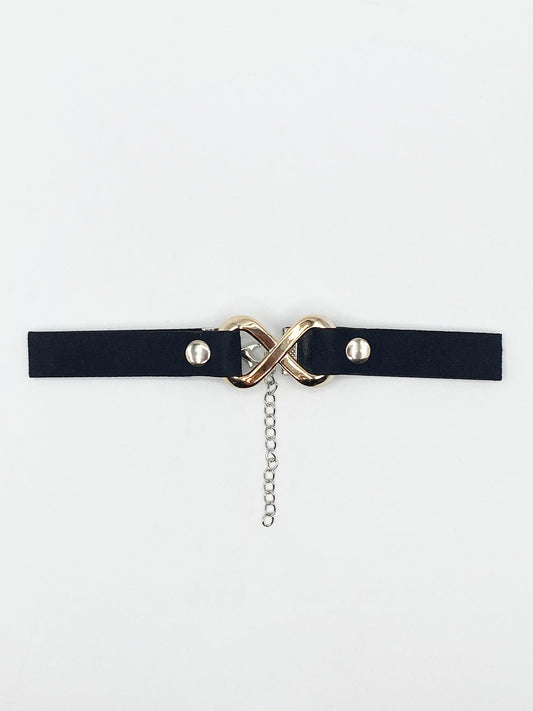 Black Faux Suede Choker Necklace With Gold Metal Centre Piece