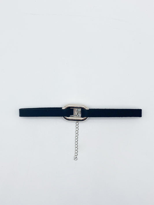 Black Faux Suede Choker Necklace With Silver Metal Center Charm