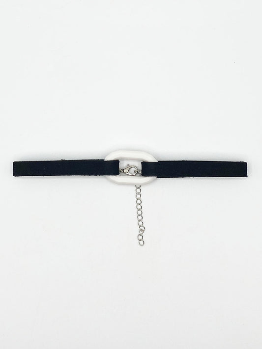Black Faux Suede Choker Necklace With White Plastic Charm