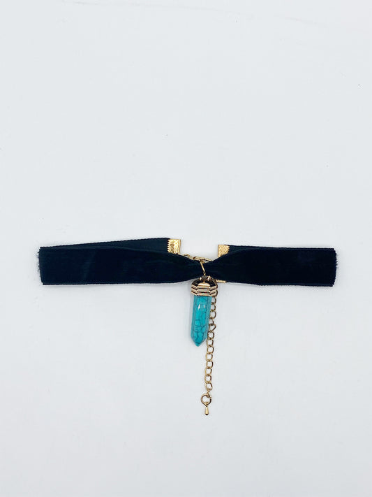 Black Faux Velvet Choker With Turquoise Stone Charm