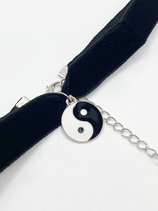 Black Faux Velvet Choker Necklace with Ying Yang Charm