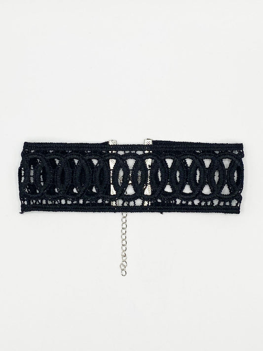 Black Wide Corded Effect Circular Detail Choker Necklace