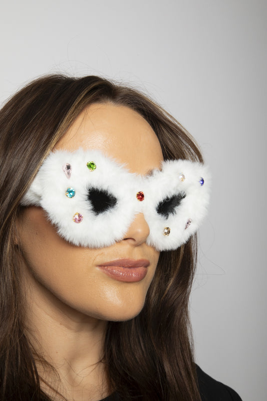 Faux Fur Cateye Sunglasses with Multicoloured Gems