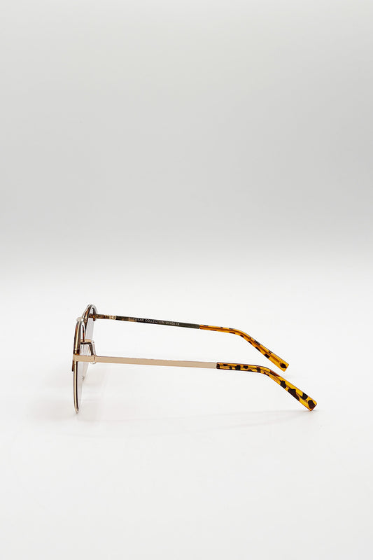 Gold 70's Collection Navigator Sunglasses With Brown Tinted Lenses