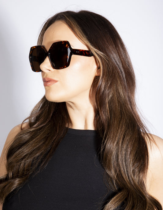 Oversized Rounded Angular Sunglasses in Tortoiseshell