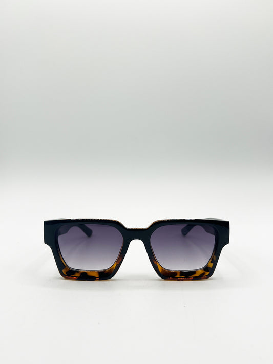 Tortoise Retro Navigator Sunglasses in Grey Blue