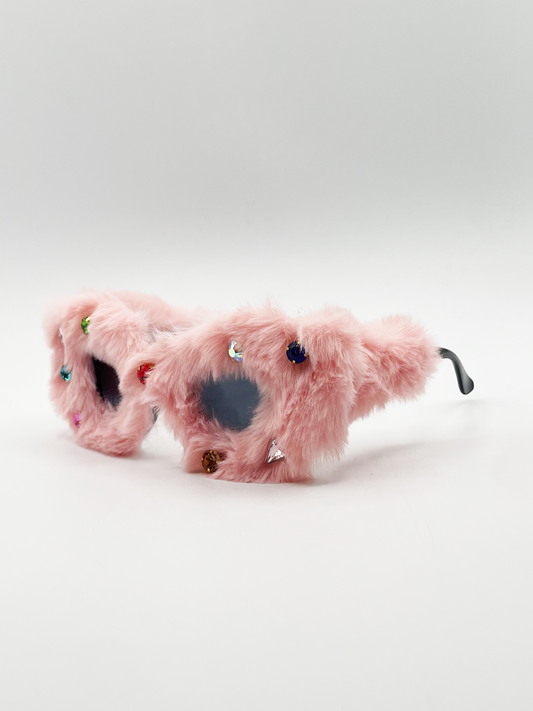 Faux fur Cateye Sunglasses with multicoloured Gems in Pink
