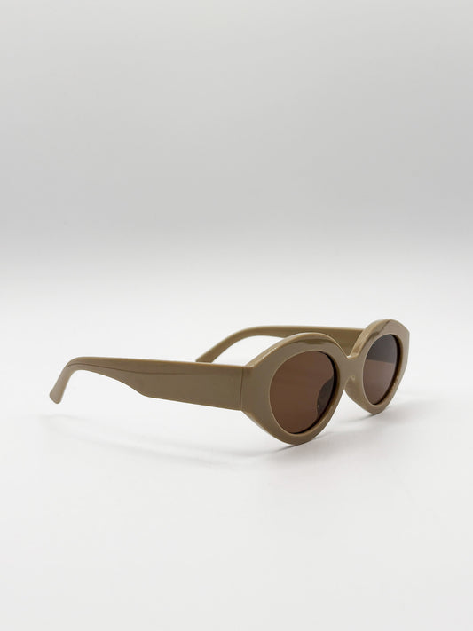 Retro Small Oval Sunglasses Beige
