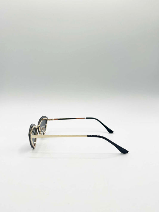 Oval Geometric Metal Frame Sunglasses Black Gold