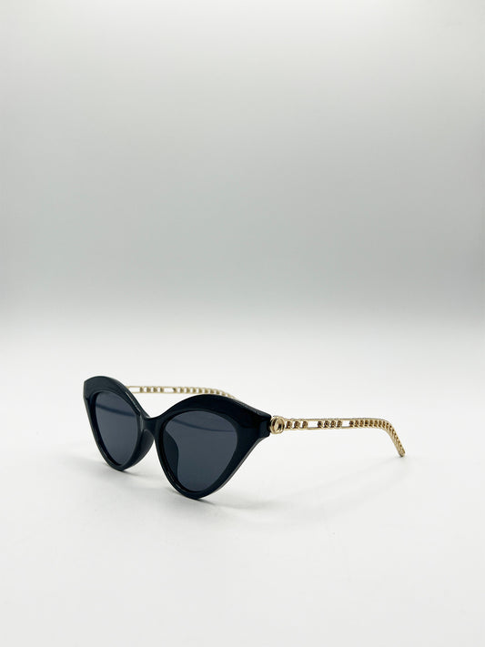 Cat Eye Sunglasses with Thin Chain Arm in Black