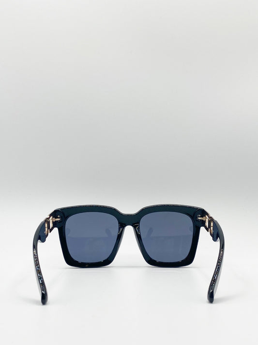 Oversized Square Sunglasses With Temple Frame Detail In Tort