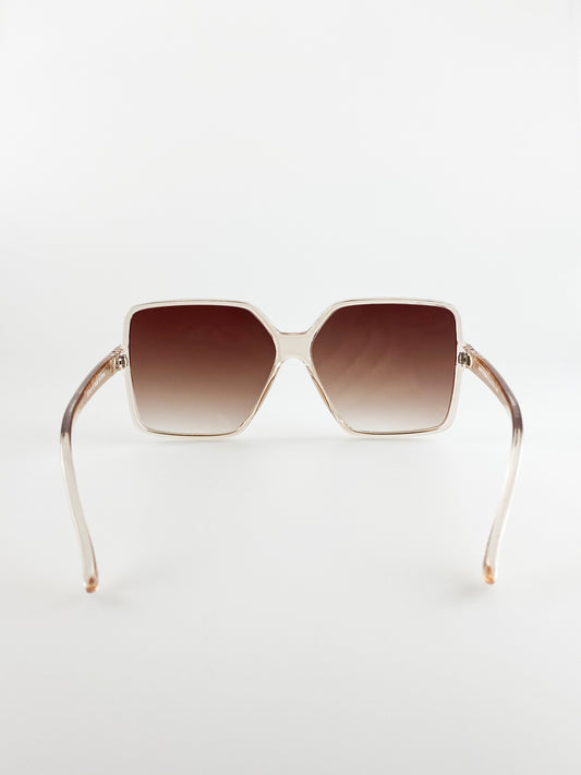 Square Sunglasses In Clear Frame and Peach Tinted Lenses