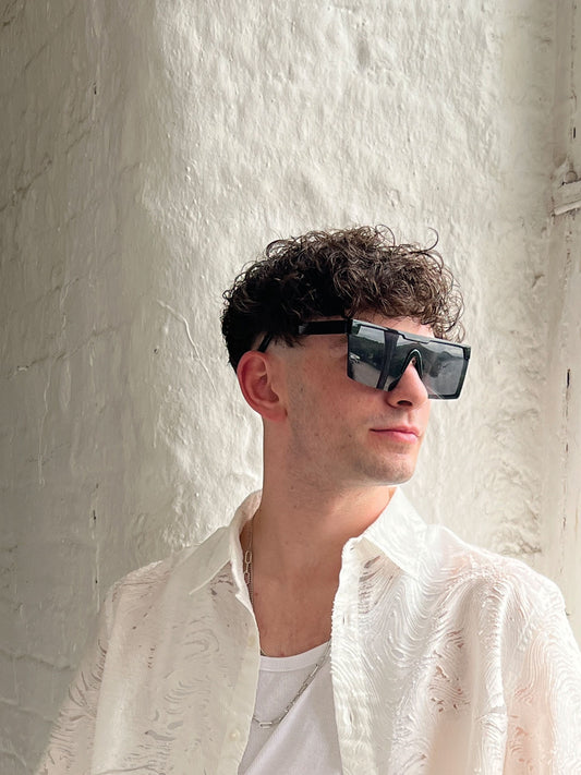 Black Oversized Flat Top Square Frame Sunglasses