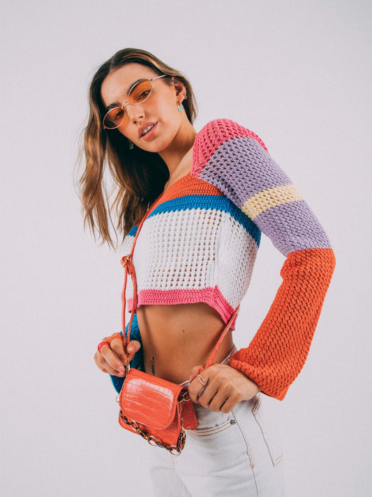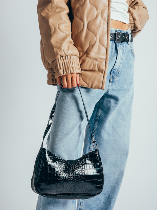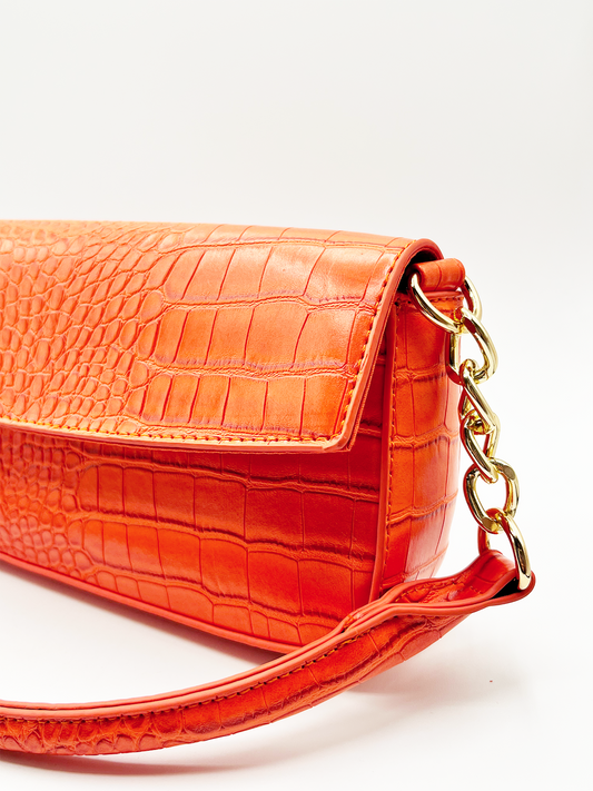SVNX Croc PU Mini Pillow Bag with Flap in setting sun
