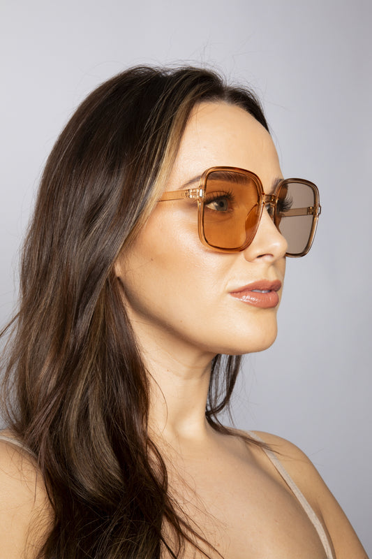 Oversized Lightweight Square Frame Sunglasses in Light Brown