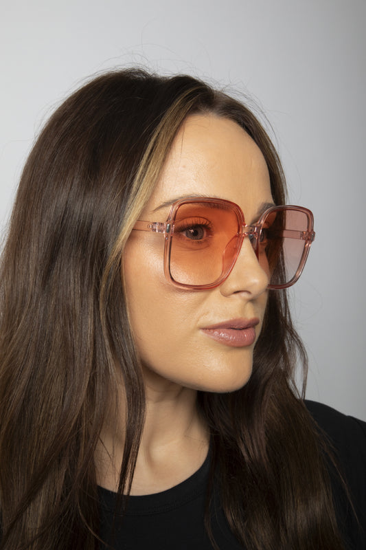 Oversized Lightweight Square Frame Sunglasses in Pale Pink