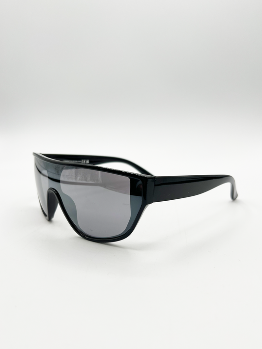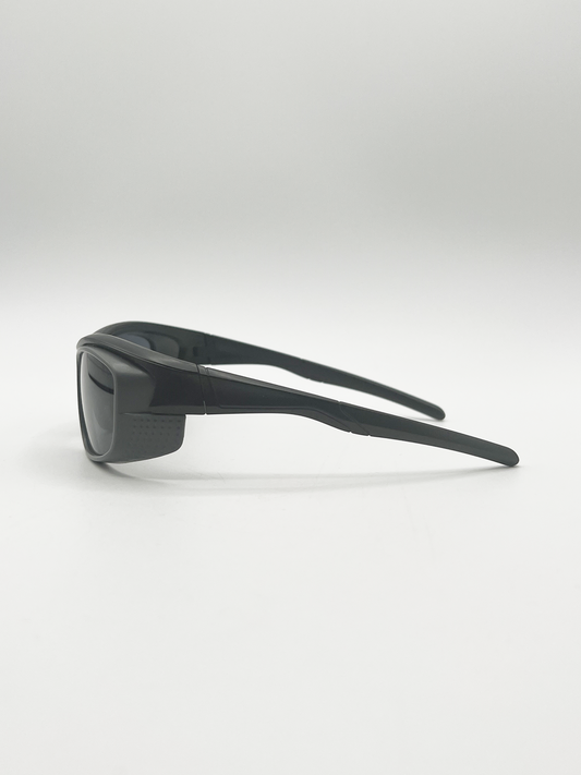 Wrap Around Racer Sunglasses with Star Hinge Detail in Black
