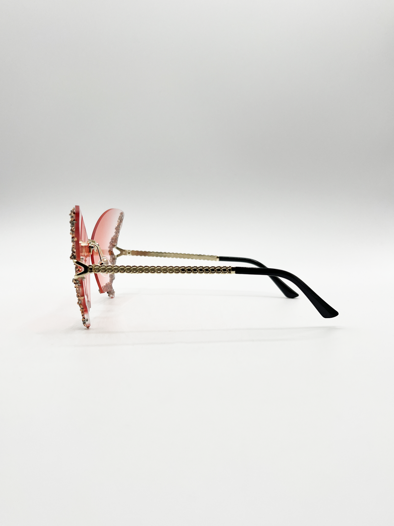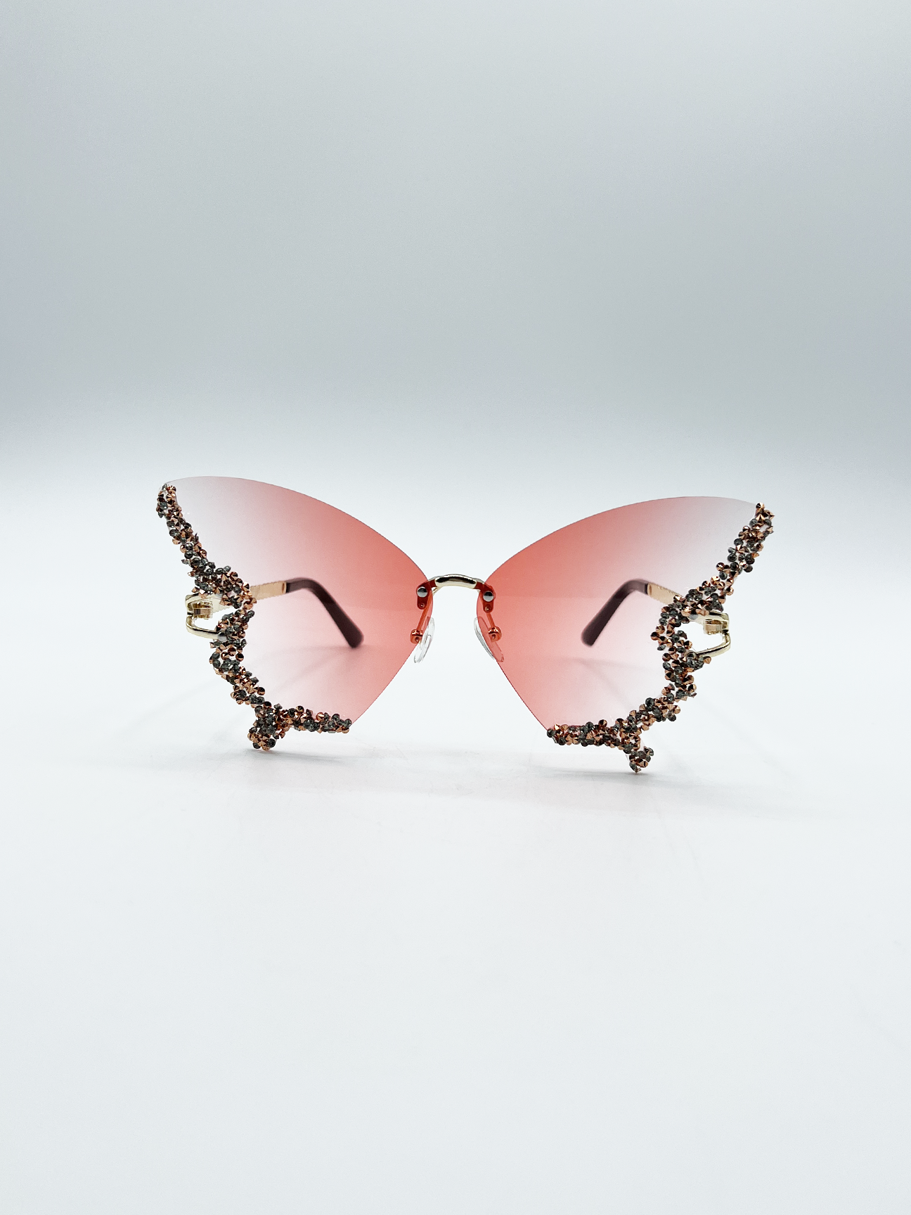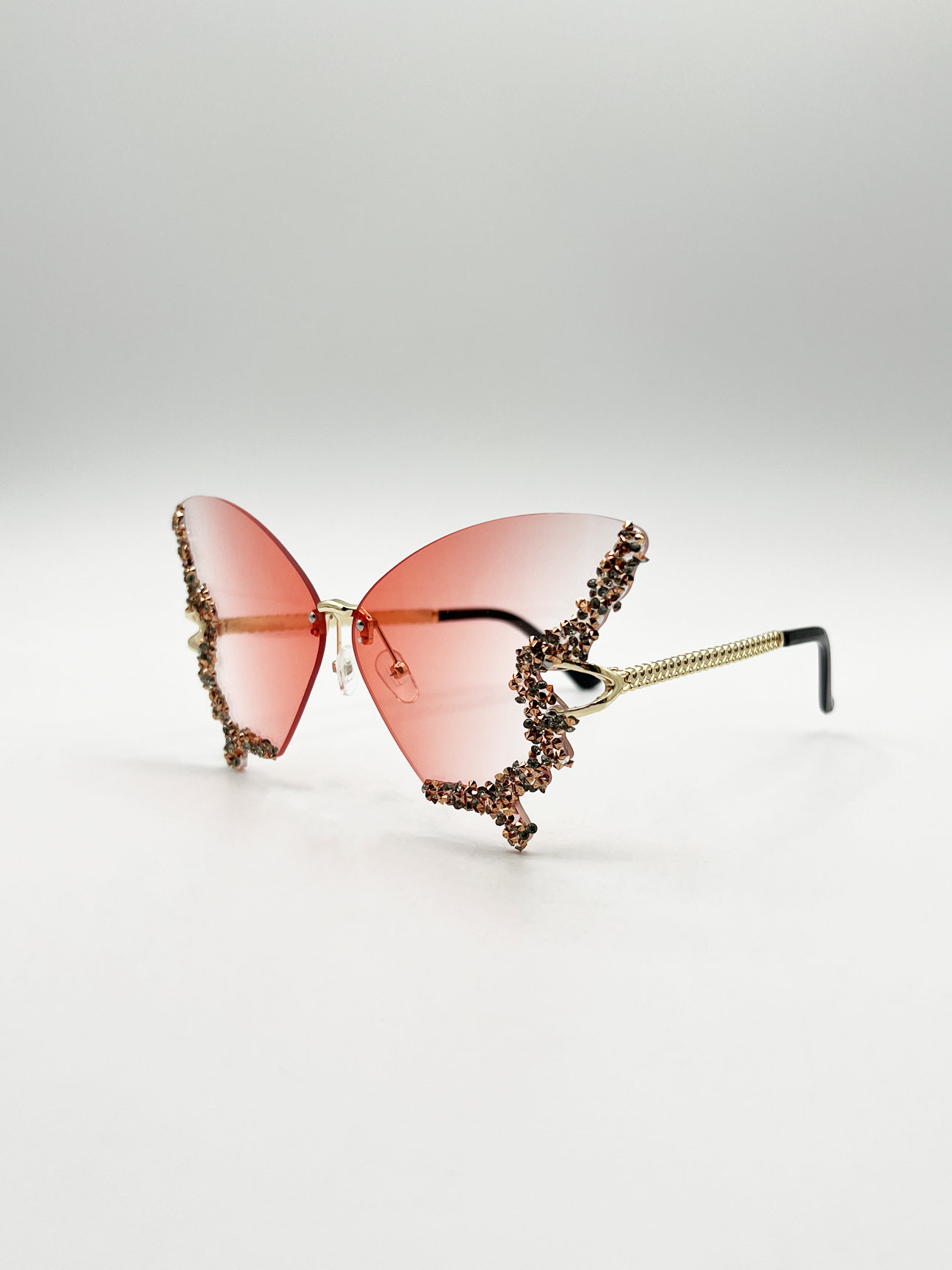Butterfly Lens with Crystal Detail in Gradient Pink