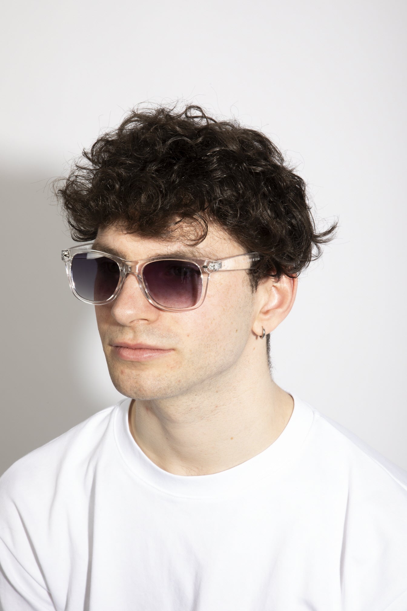 - Clear Wayfarer Sunglasses with Graded Grey Lenses