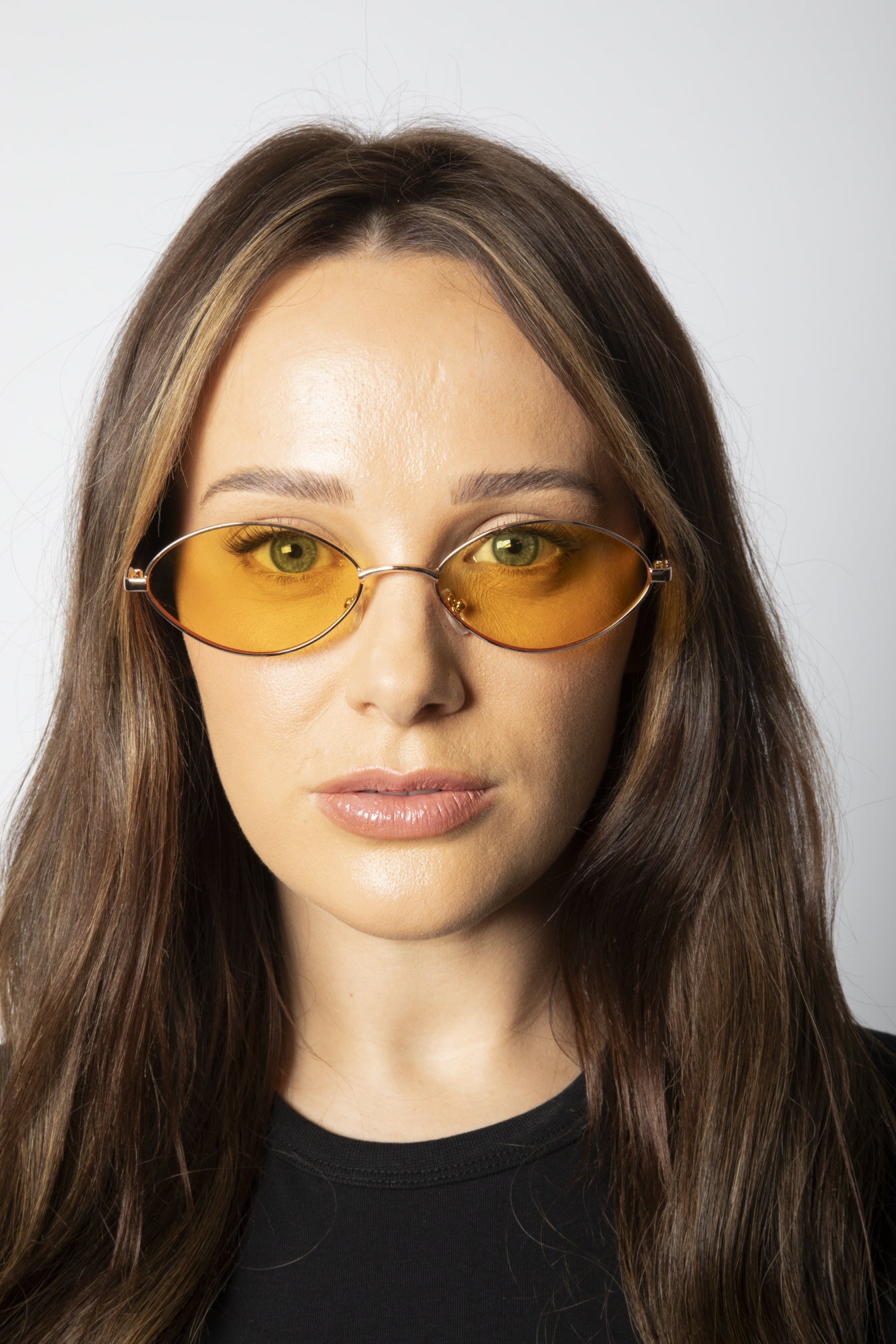 - Metal Oval Frame Sunglasses with Orange Lenses