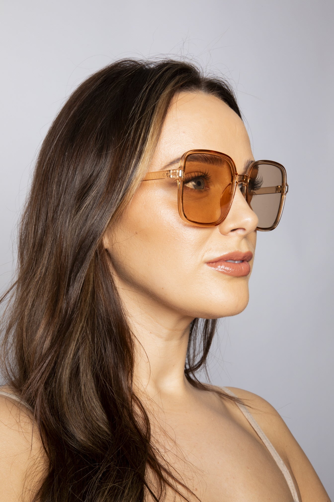 • Oversized Lightweight Square Frame Sunglasses in Light Brown
